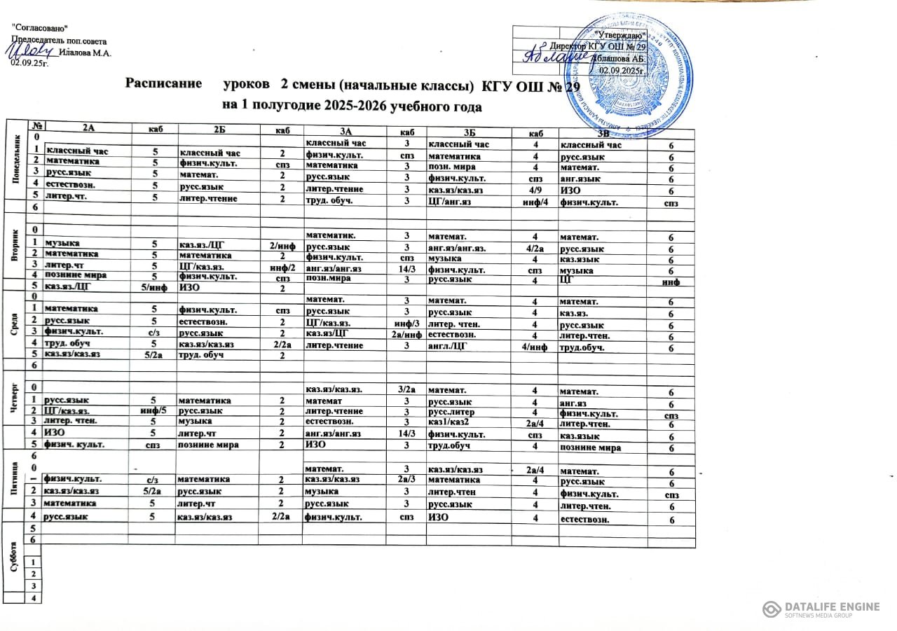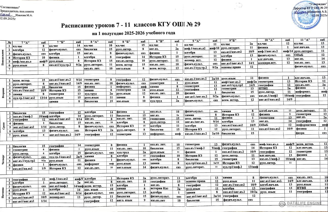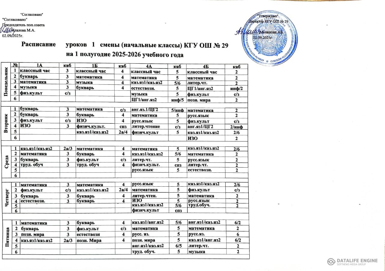 2025–2026 жаңа оқу жылын ұйымдастыру аясында мектепте сабақ кестесі бекітілді.