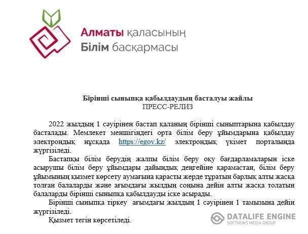 31 наурыз 2022 0 1 2 3 4 5 Бірінші сыныпқа қабылдауды бастау туралы ПРЕСС-РЕЛИЗ / ПРЕСС-РЕЛИЗ о старте приема в первый класс