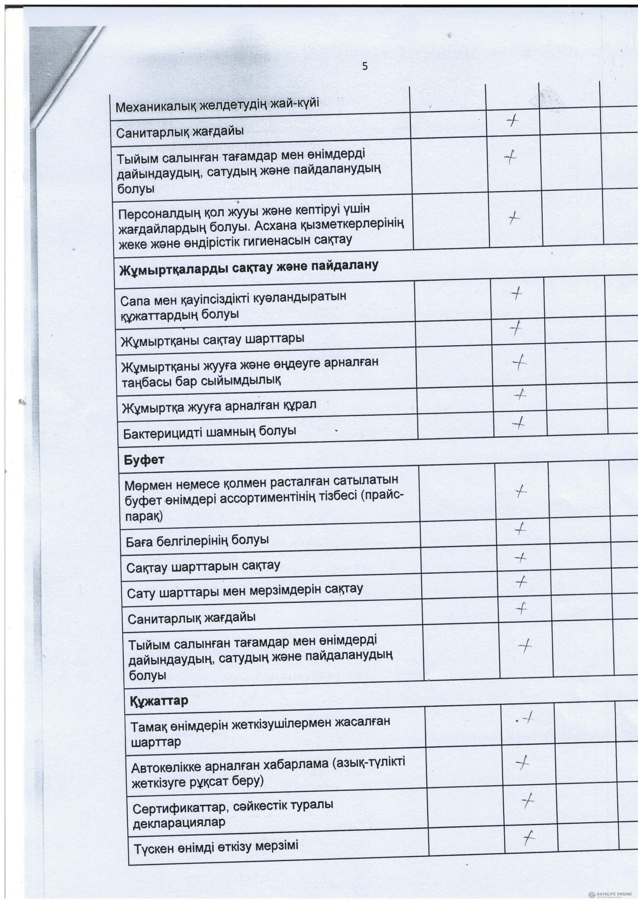 » Тамақтану сапасына мониторинг жүргізу актісі