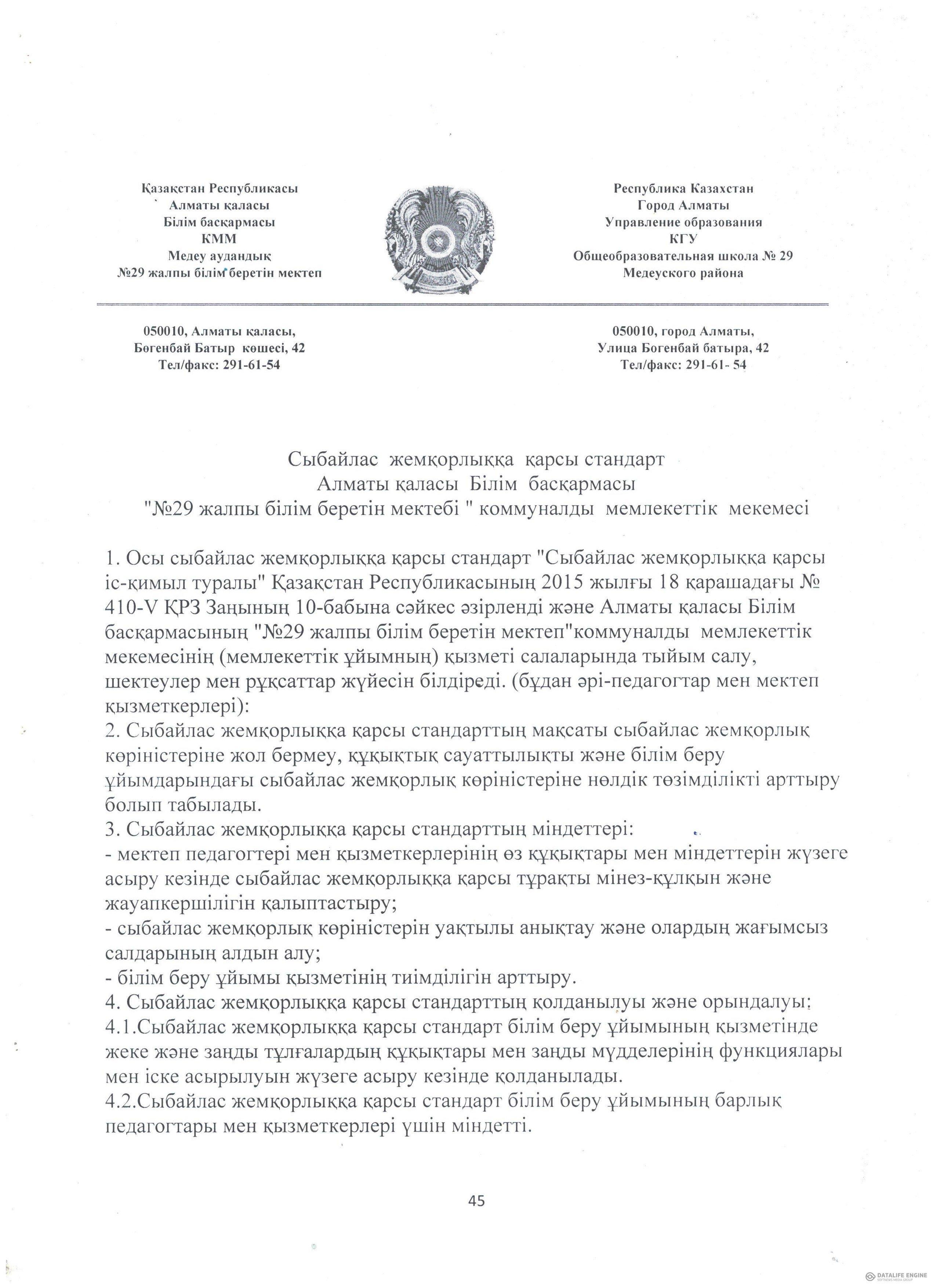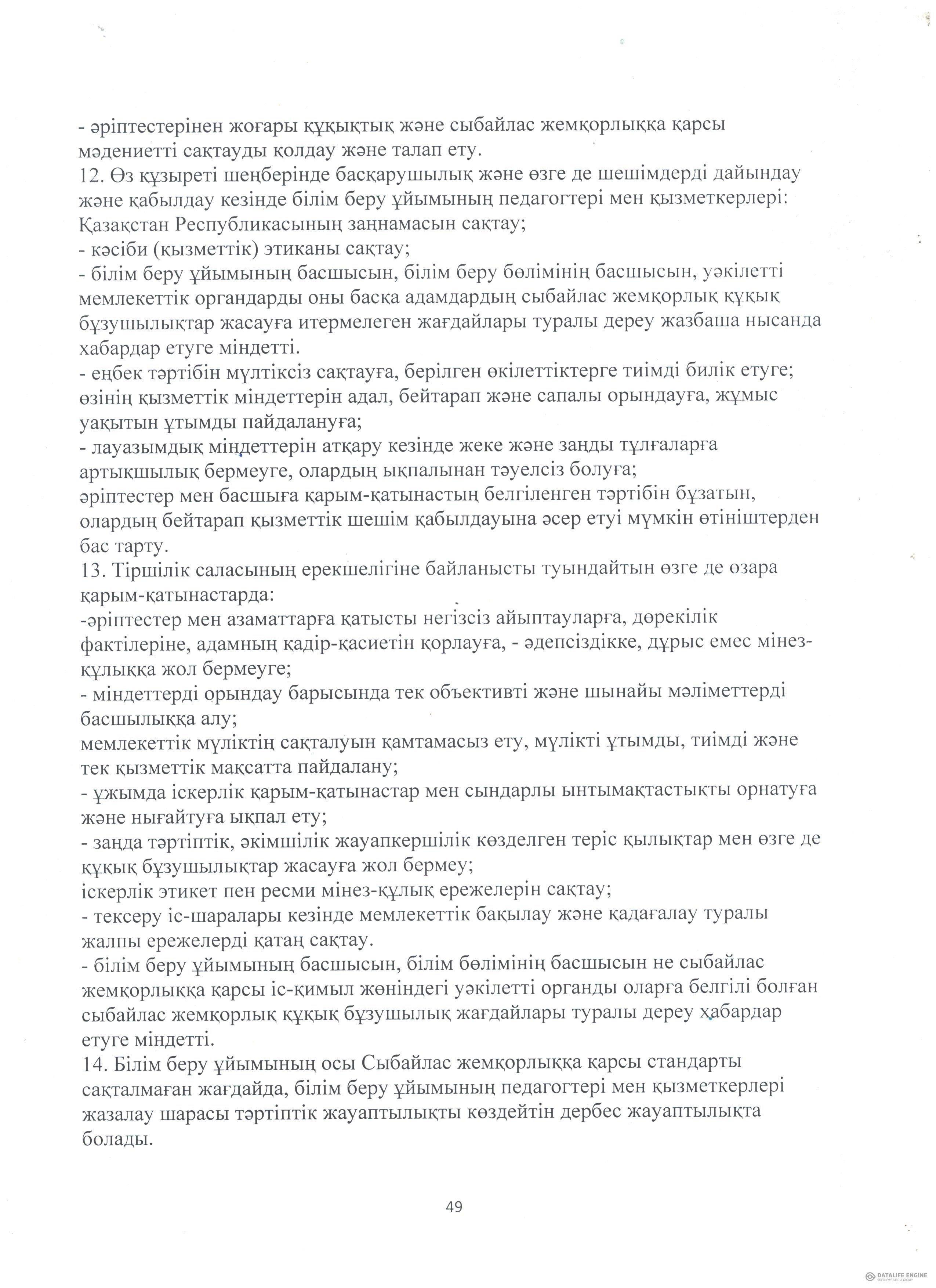 02 қыркүйек 2024 0 1 2 3 4 5 Сыбайлас жемқорлыққа қарсы стандартты бекіту туралы бұйрық / Приказ об утверждении антикоррупционного стандарта