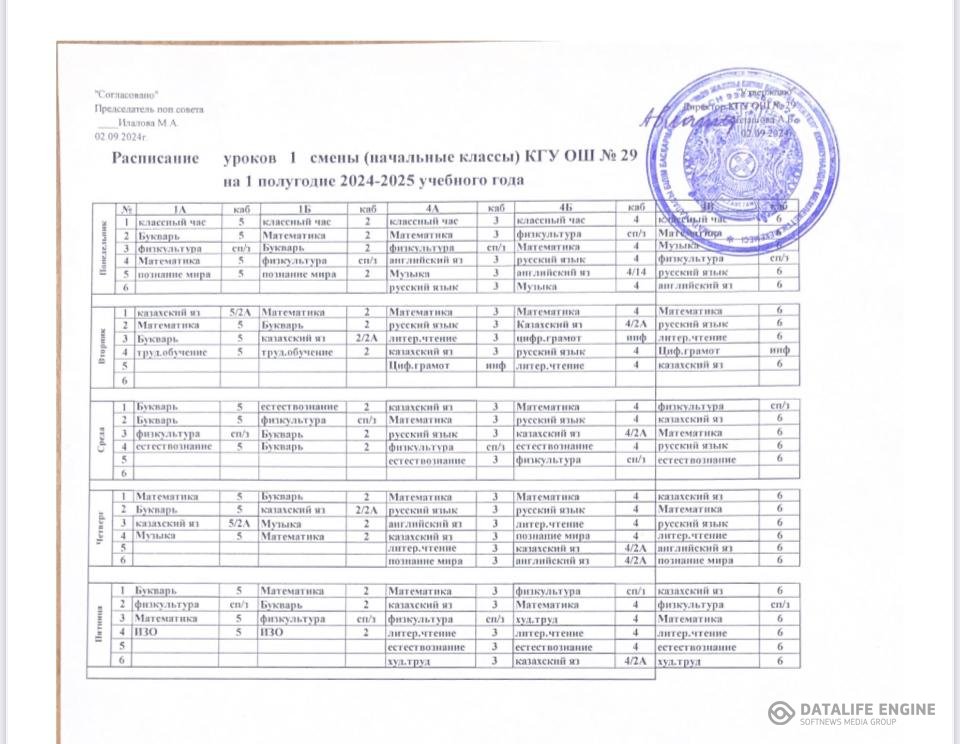 Жалпыға бірдей білім беру қорынан 2020-2021 оқу жылына арналған №29 ЖББМ оқушыларының тамақтану кестесі. / График питания учащихся ОШ №29 на 2020-2021 учебный год из фонда всеобуча.