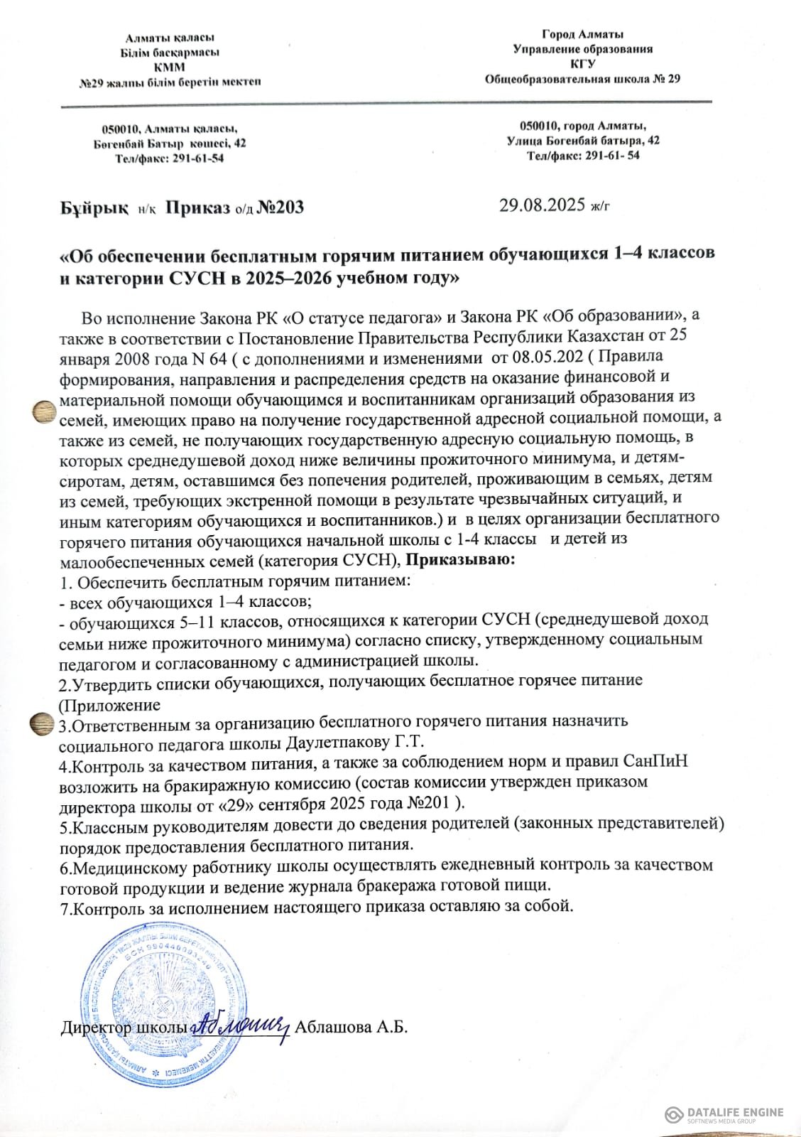 - 1–4 сынып оқушылары тегін ыстық тамақпен қамтылған.
