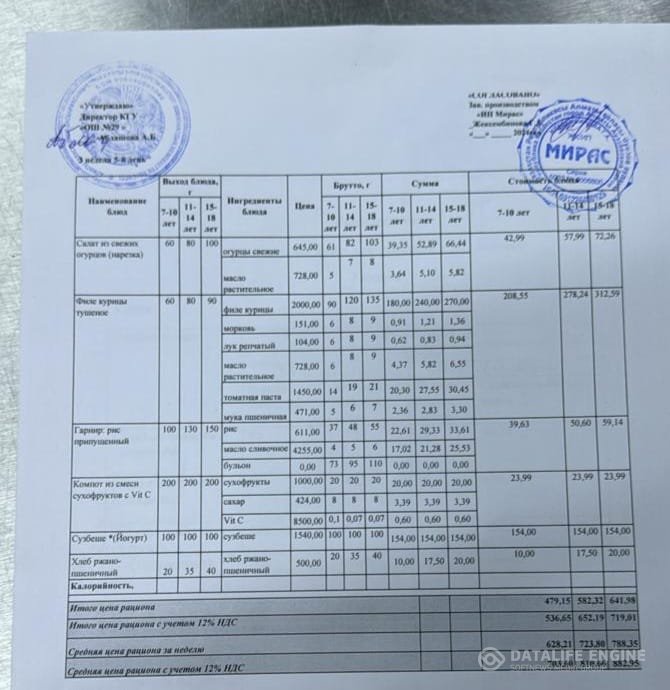 Ас мәзірі 1-4 сыныптар/ Меню 1-4 классы