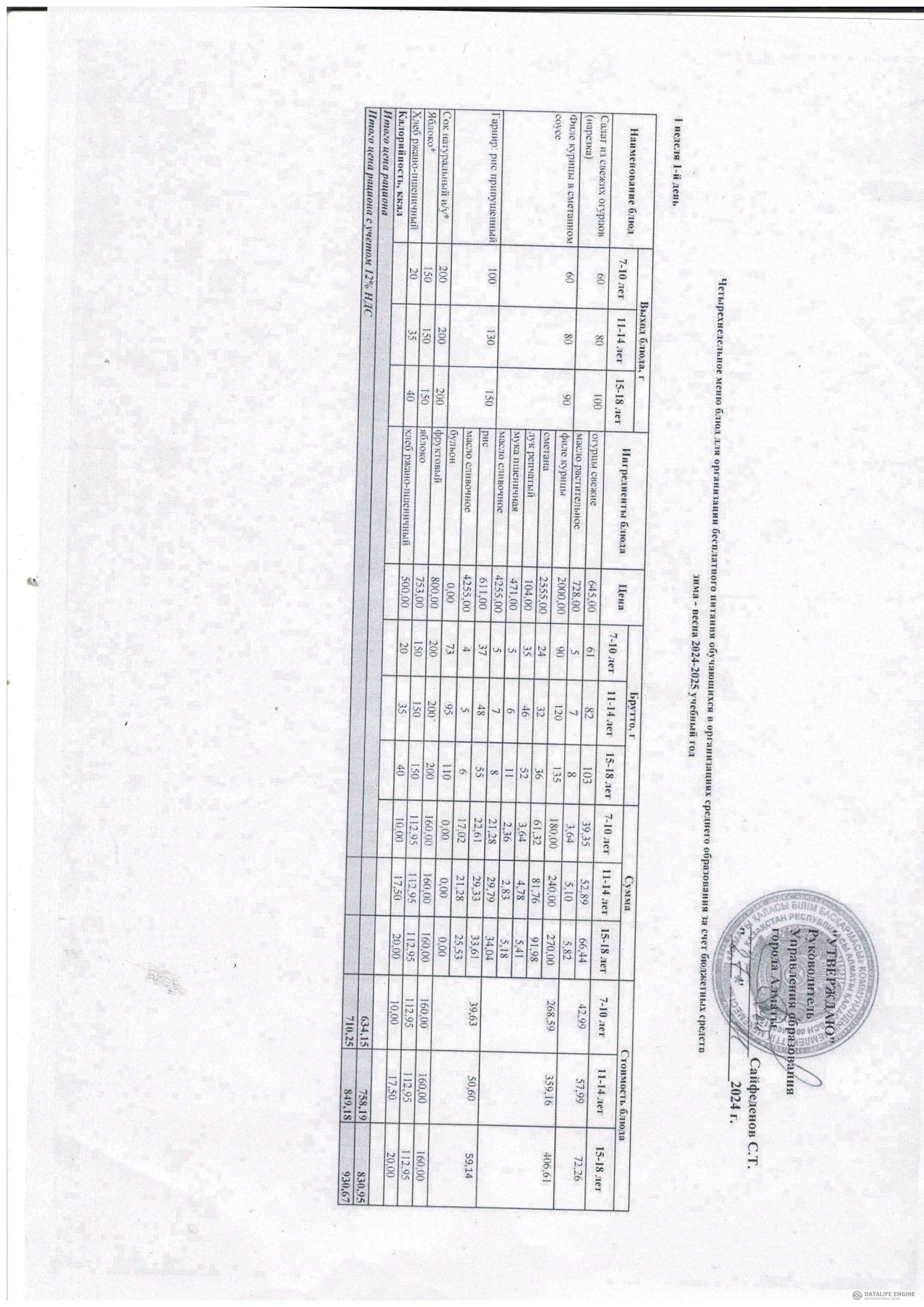 27 қараша 2024 0 1 2 3 4 5 2024-2025 оқу жылына арналған Қыс-Көктем мәзірі / Меню зима-весна на 2024-2025 учебный год