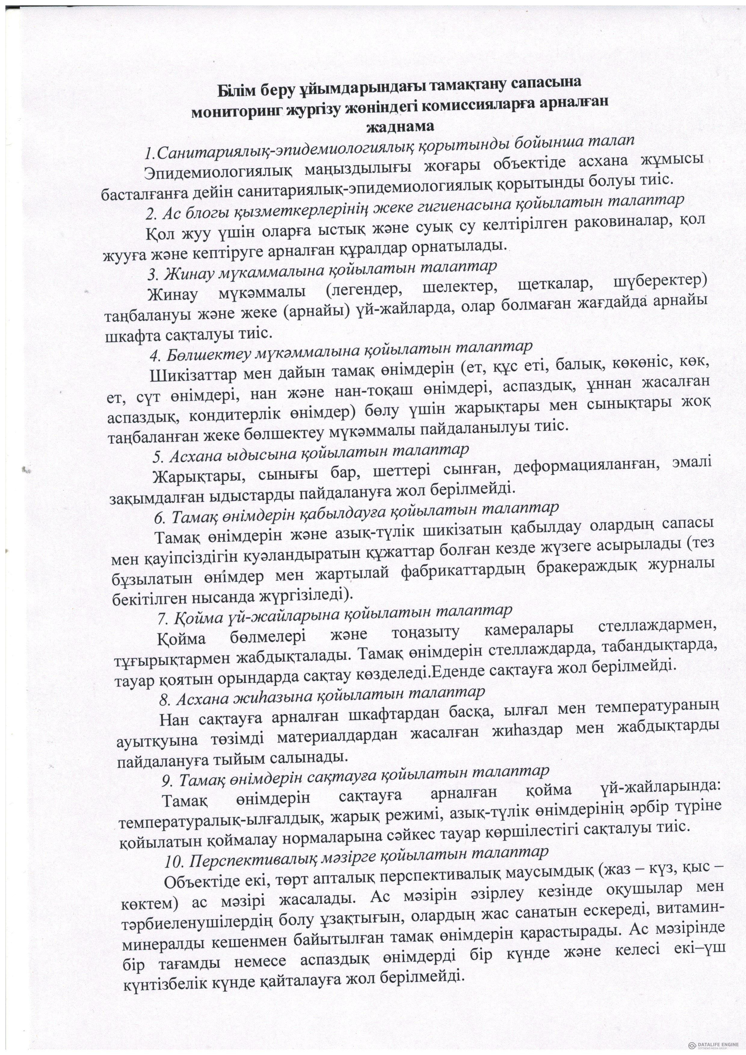 06 қыркүйек 2024 0 1 2 3 4 5 Білім беру ұйымдарындағы тамақтану сапасына мониторинг жүргізу жөніндегі комиссияларға арналған жаднама