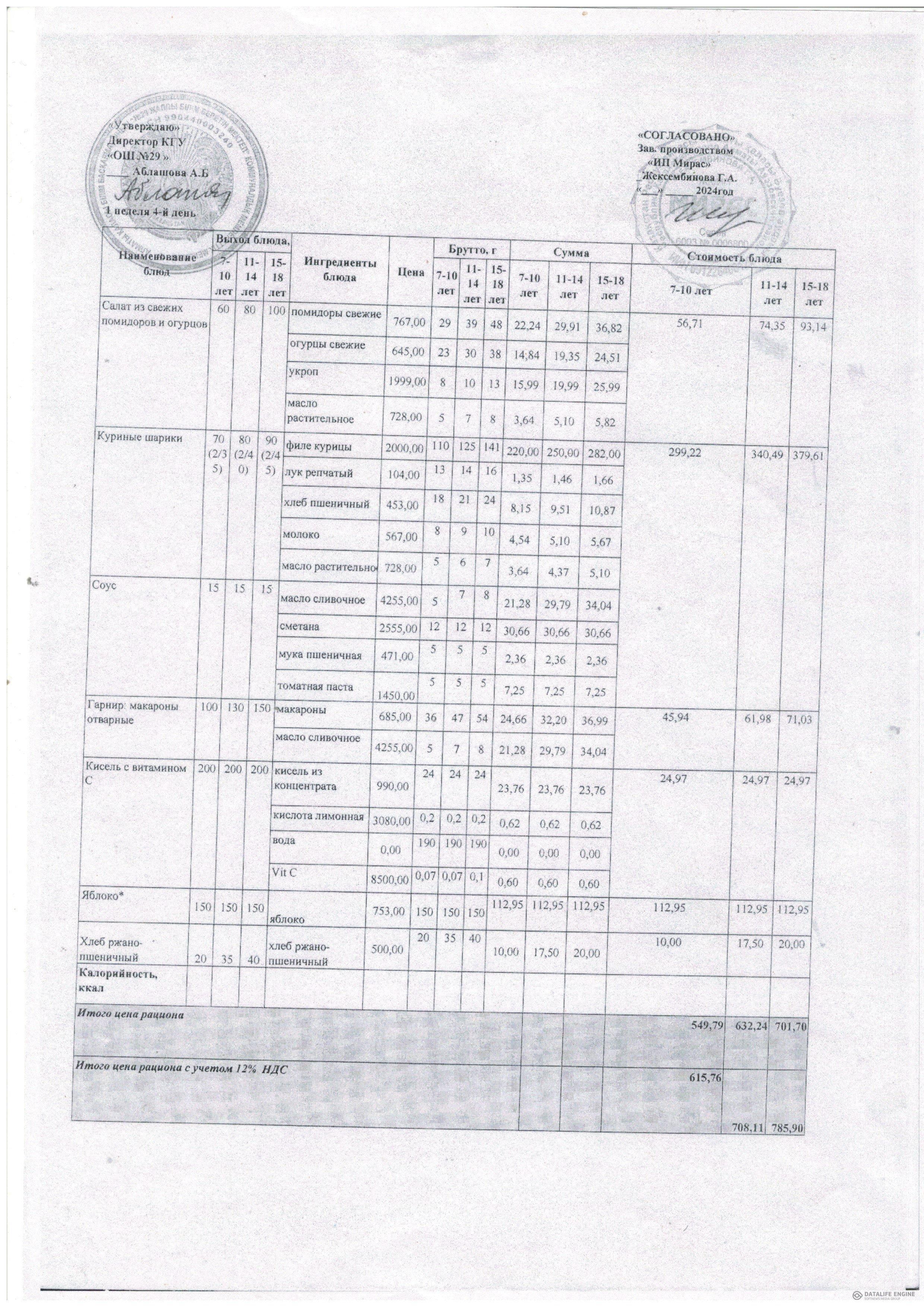 Ас мәзірі 1-4 сыныптар/ Меню 1-4 классы