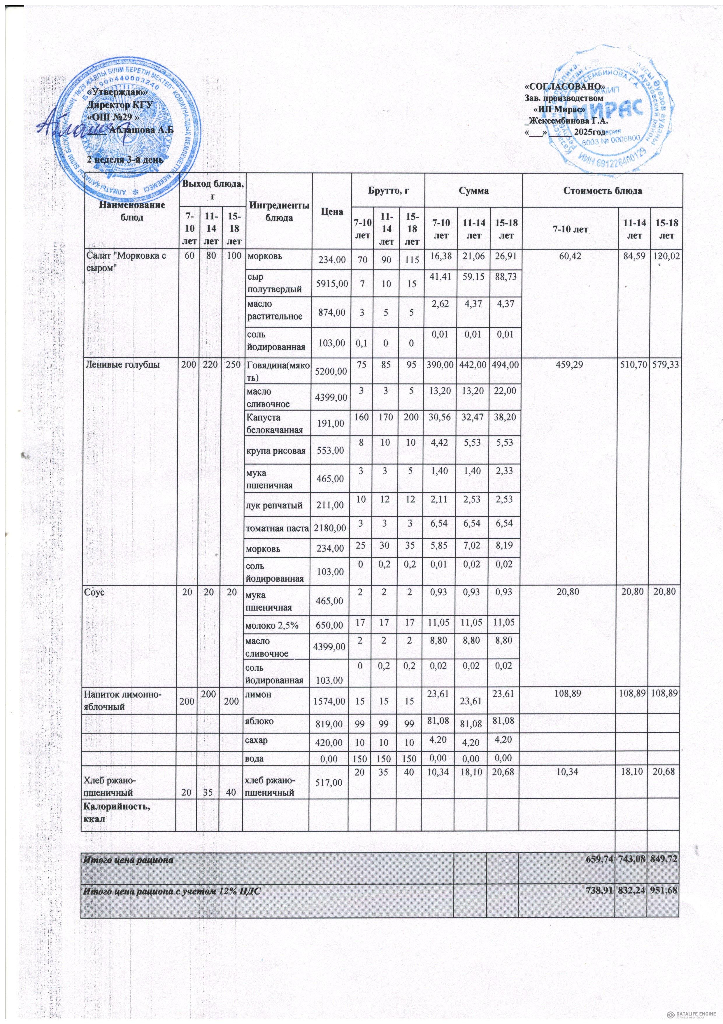 Ас мәзірі 1-4 сыныптар/ Меню 1-4 классы