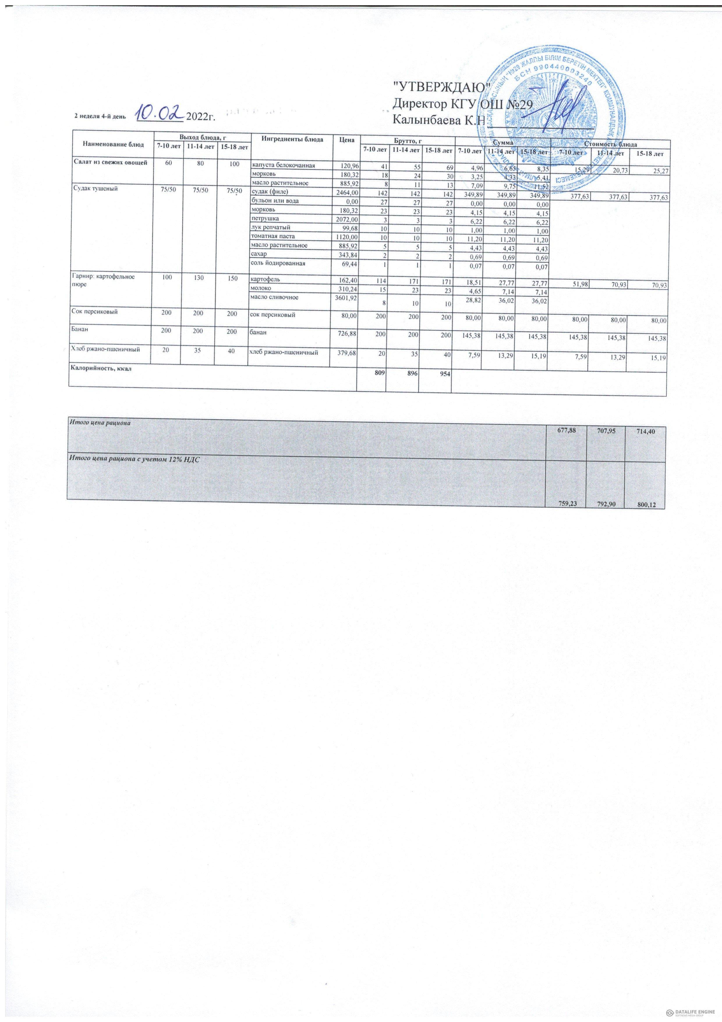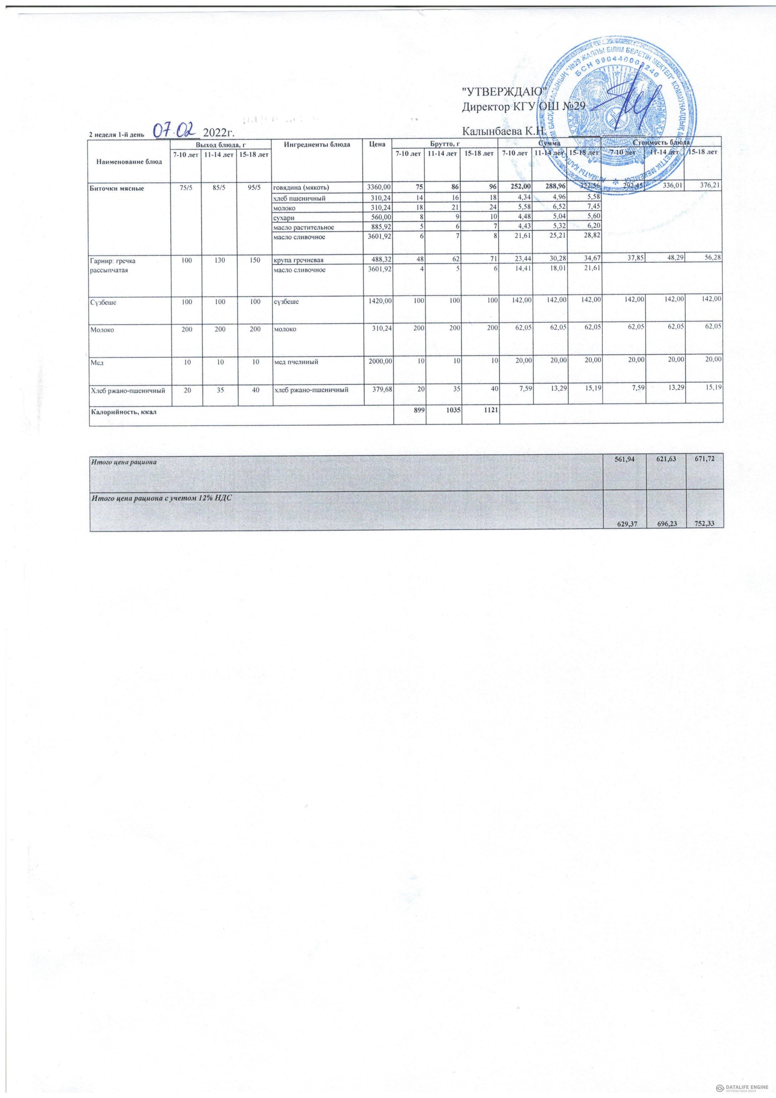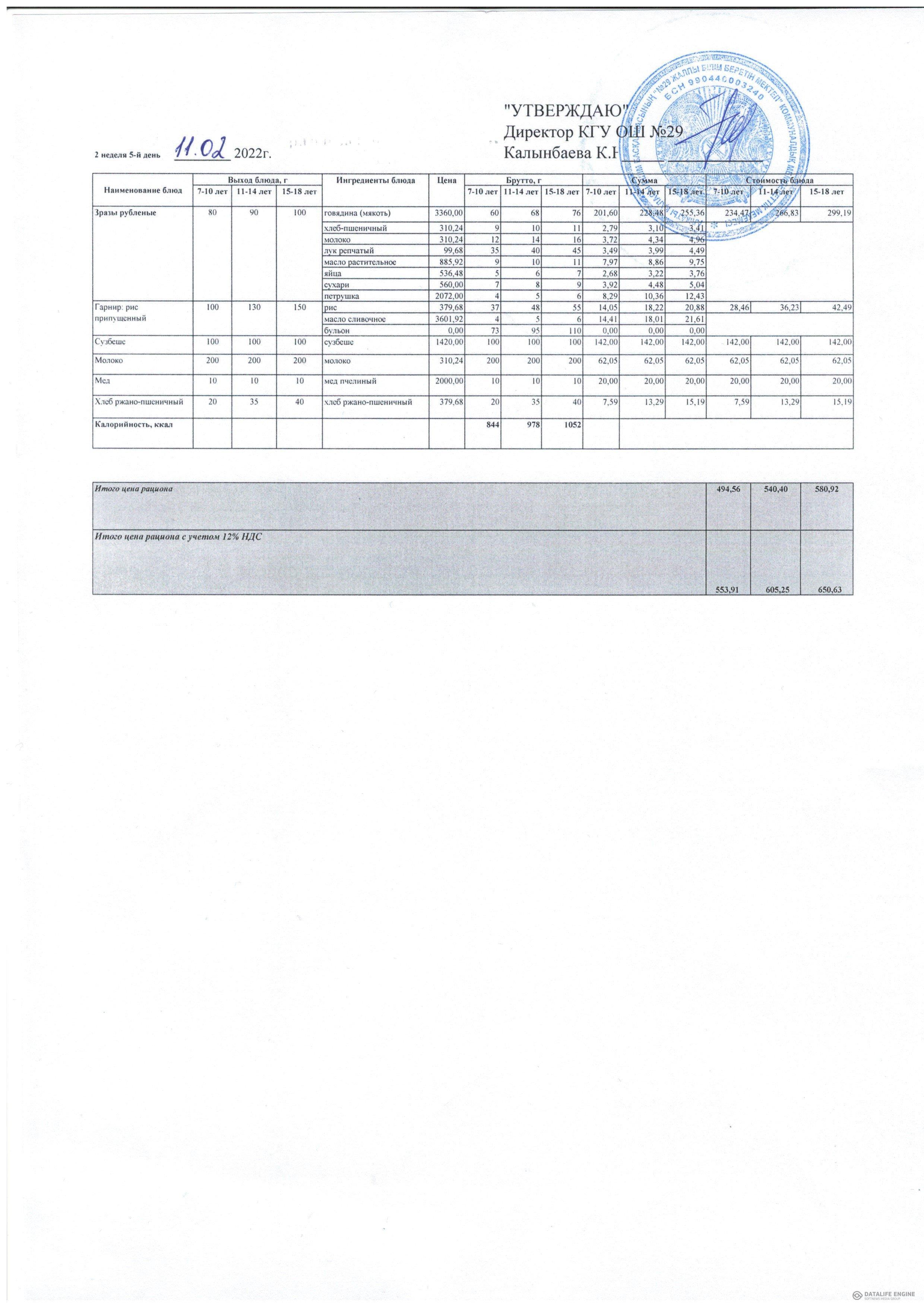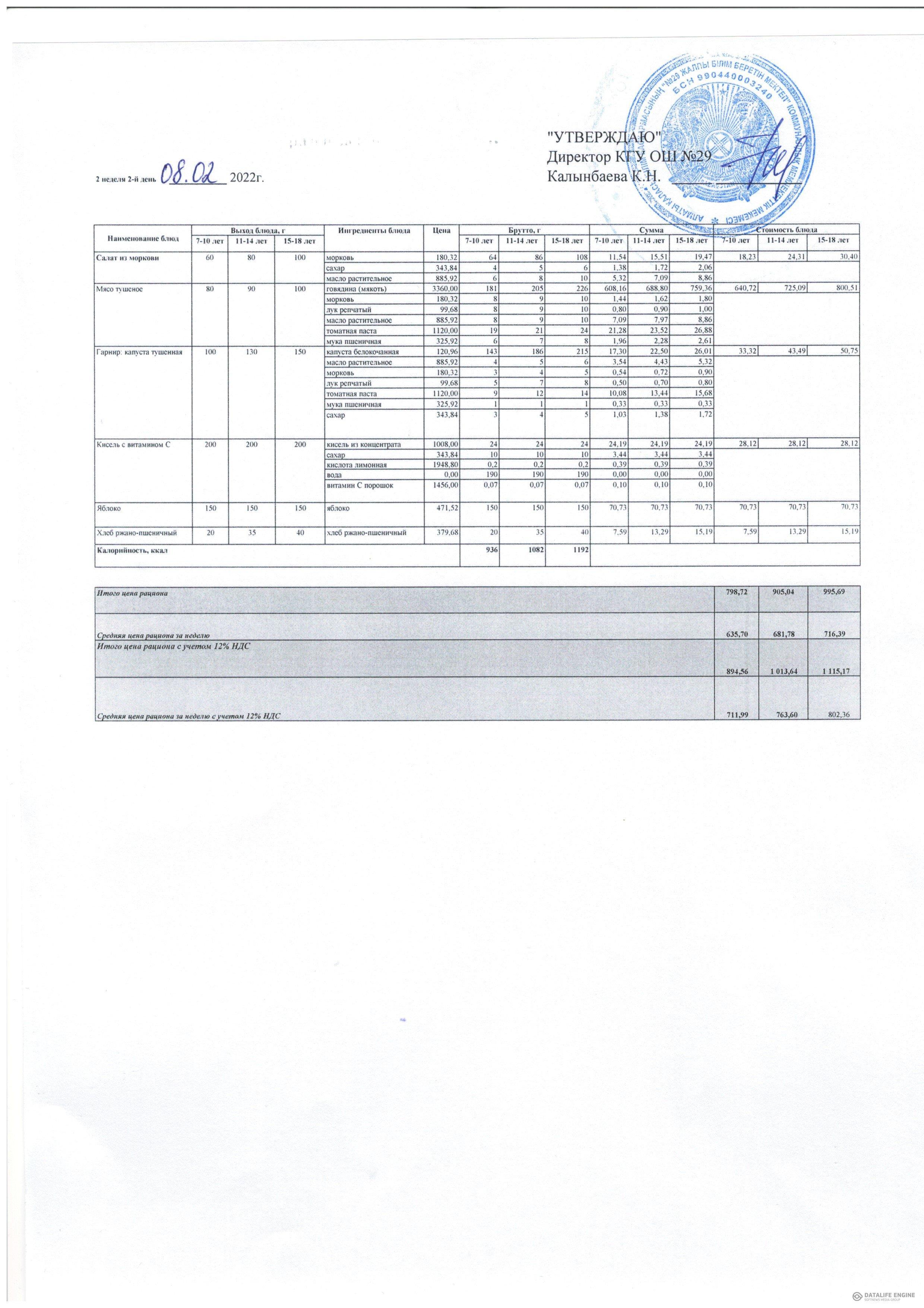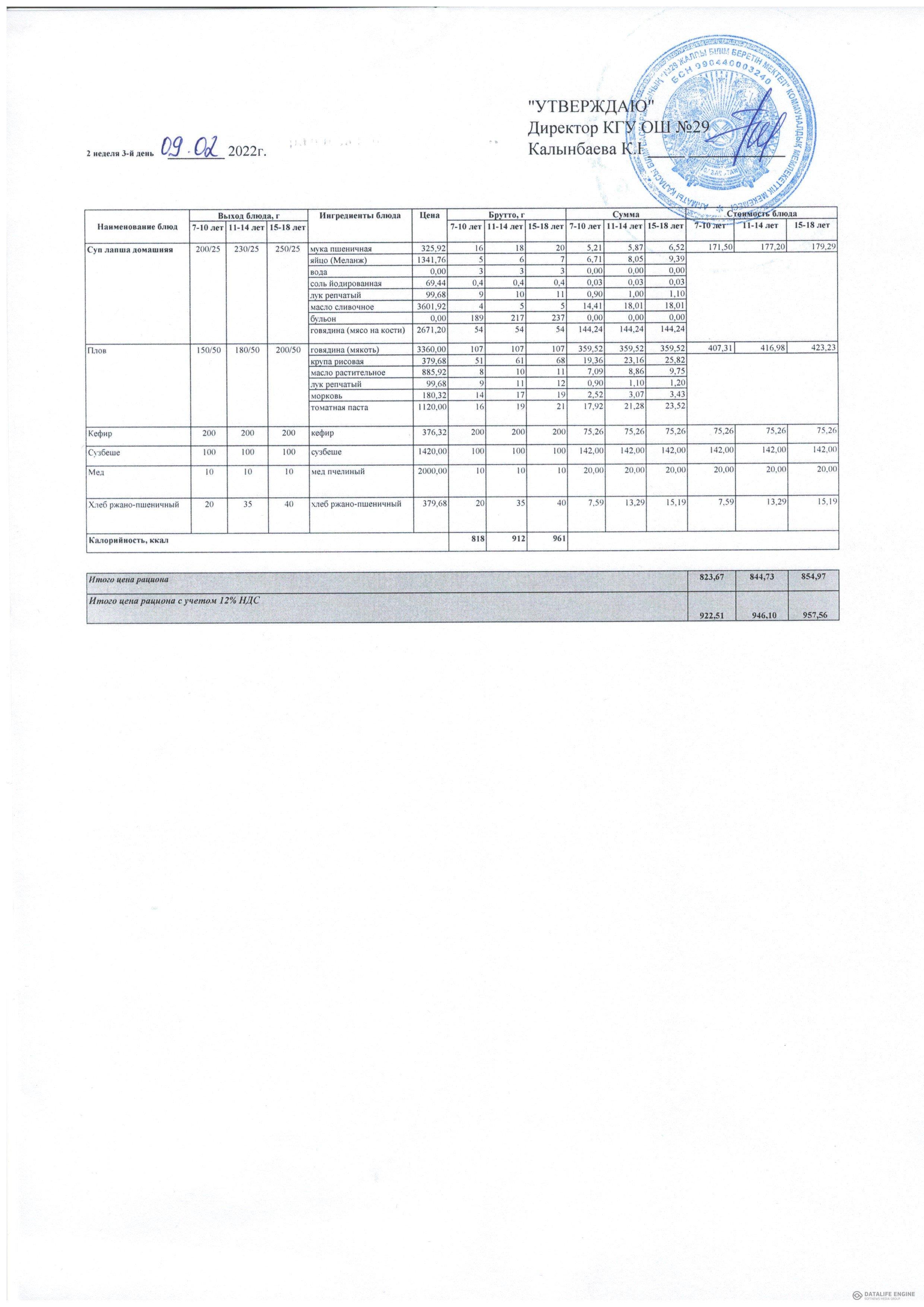 КГУ ОШ№29 » Тамақтандыру » Сапалық мониторинг » 2022 жылғы қыс-көктем мәзірі жалпыға бірдей білім беру қоры есебінен тамақтанатын оқушылар. 2 апта 02.22 жыл / Меню зима-весна 2022 года учащихся питающихся за счет фонда Всеобуч. 2 неделя 02.22 года