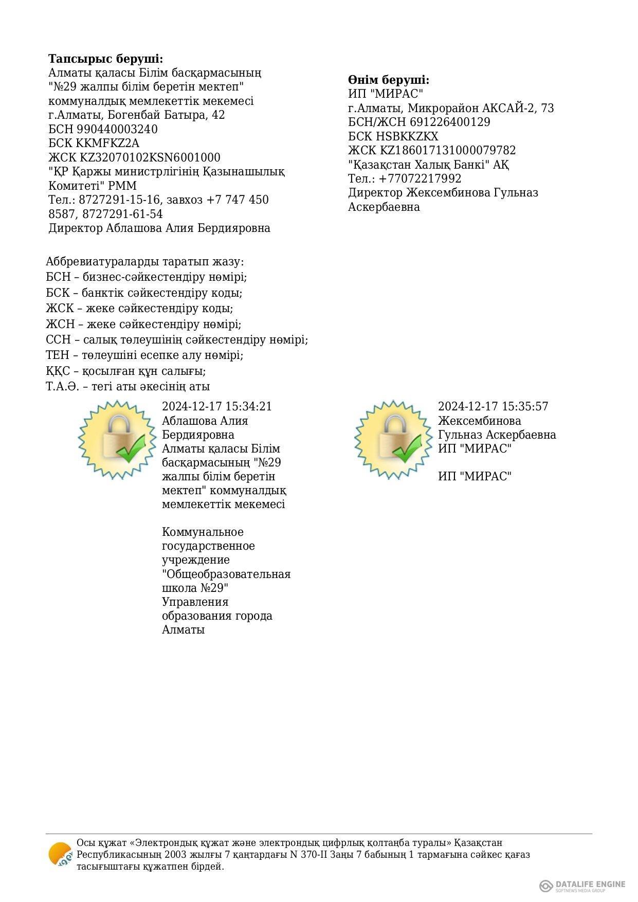 31 желтоқсан 2024 0 1 2 3 4 5 2024 жылға арналған тамақтану келісім шарты / Договор по питанию на 2024 год